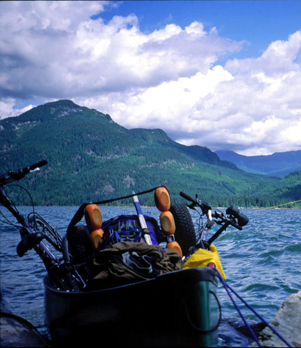 Canoe trailer, bikes, gear. Does it get any better? (West shores of Stave L.)