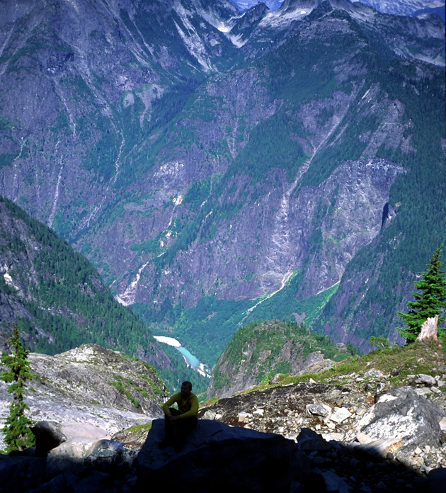 Not the best photo, but from our high camp you can see where we crossed the river below.