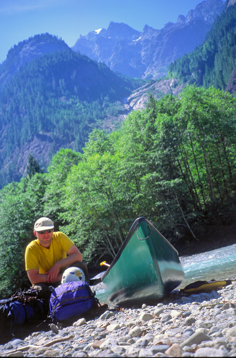 Getting ready to cross the Stave R. The trail leads up into the tree in the foreground, up though the darker trees on the right, and then left behind the treed knob (great instructions on Bivouac.com). You can see one of the summits of the Judge which is the the left most peak with a tiny snow patch just right of it. We climbed that one.