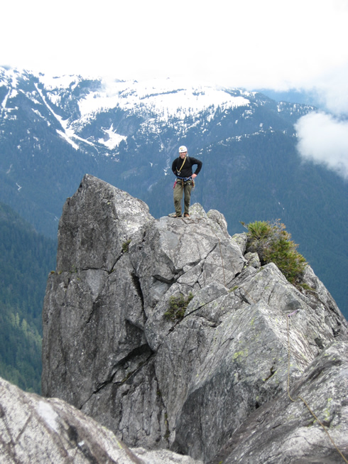 Stellar rock, great views, Pigeon Spire-like arete walking. This photo is taken looking back from the one of Damien leading.