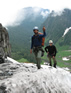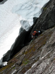 Equipment: set of nuts and small cams to 0.75", Hexes 1"-3.5", Ice axe, long slings, and 60m double ropes, helmets,headlamps. Crampons and a selection of pins would have been useful.